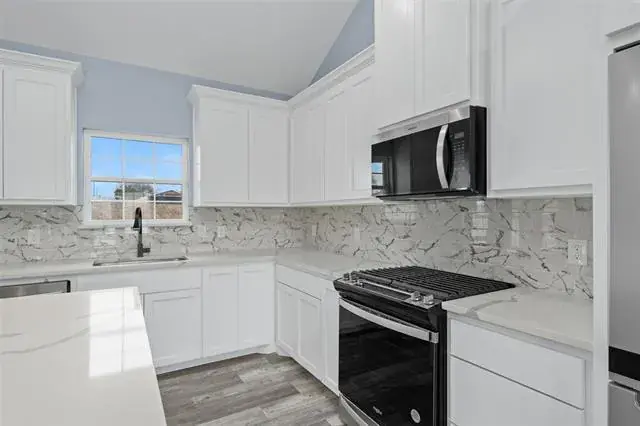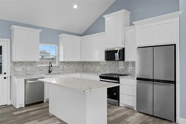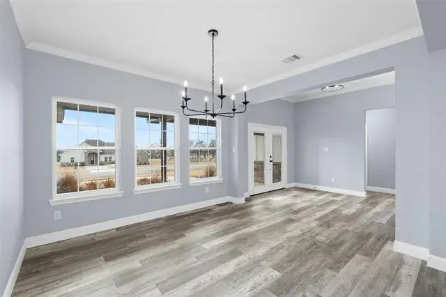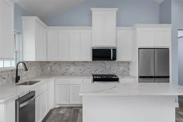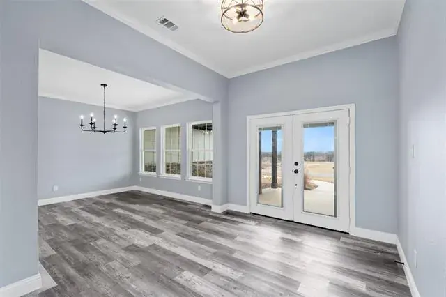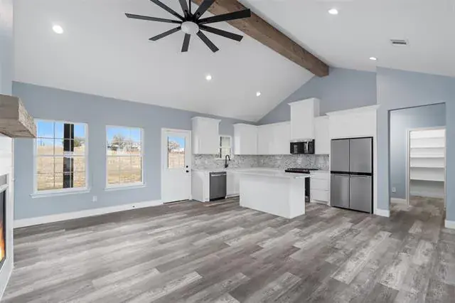 This custom four bedroom, two and a half bath home has all the bells and whistles on 1 acre! As you walk into the front entry, you’ll immediately notice the high ceilings, custom light fixtures and luxury vinyl plank flooring throughout. Perfect for those with allergies, this home has no carpet! Features include a lovely dining area, spacious living room with fireplace and custom built-ins, plus a gourmet kitchen with an abundance of cabinetry, high end quartz countertops, stainless steel appliances and a beautiful picture window overlooking the backyard. The primary suite is a private oasis separated from the other bedrooms and has a spa-like bath with luxurious walk-in shower, beautiful tile work, dual sinks and walk-in closet. Secondary bedrooms are all nicely sized. Watch the Texas sunrises & sunsets from the 2 porches! Fence negotiable.
