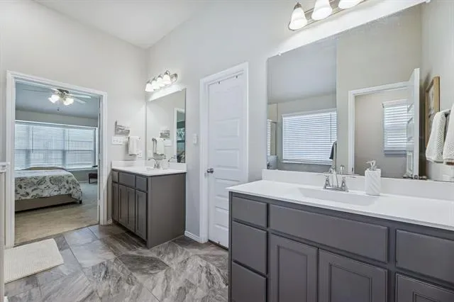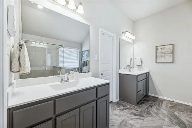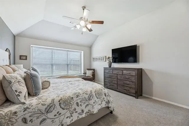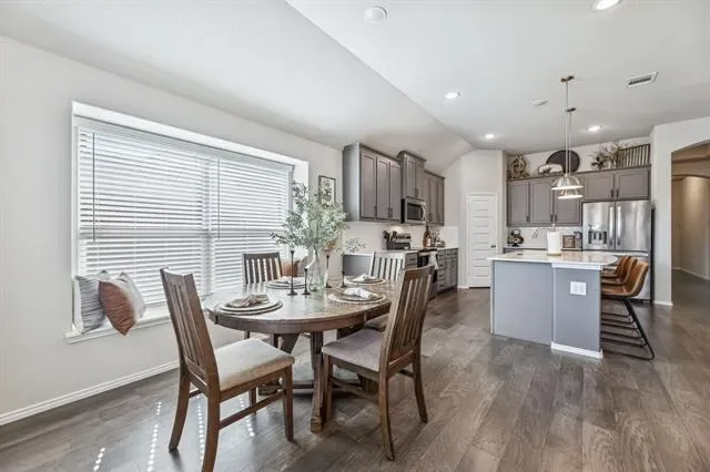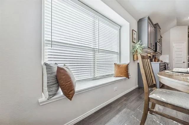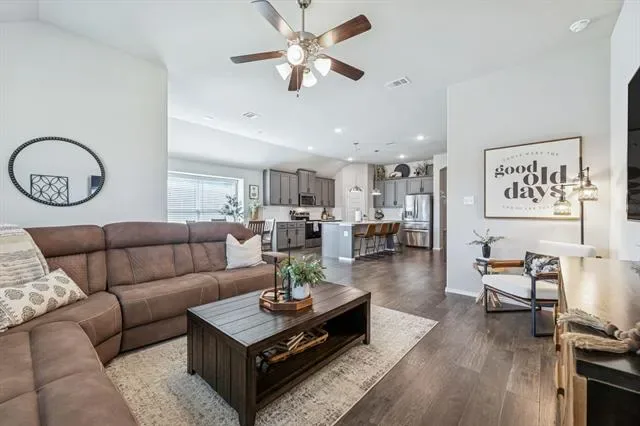 Come see this beautiful 2022- built, 4 bedroom, 2 bath home in a fantastic Azle location! Nestled in a newer neighborhood, this home offers modern style and comfort throughout. Enjoy engineered wood flooring in the main living areas and brand new carpet in all bedrooms. The laundry room has been upgraded with newly added cabinets and drying bar for extra storage and convenience with a farm house feel. Fresh stone landscaping enhances the homes curb appeal. Step out back to a covered porch featuring a mounted flat screen tv, perfect for relaxing or entertaining year round. As an added bonus, most of the attic has additional decking, providing valuable extra storage space.