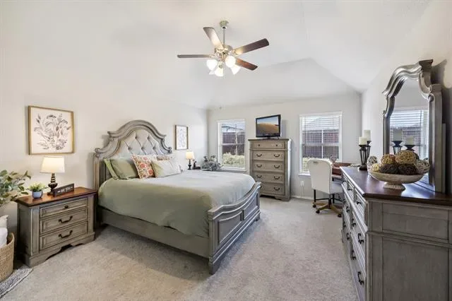 Privately set at the back of the home, the exclusive primary suite offers a peaceful retreat. Vaulted ceilings create an airy, luxurious feel, while the spacious layout allows for a true relaxation zone at the end of each day.