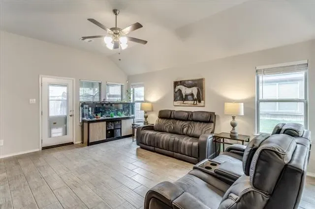 Featuring over 2,000 sqaure feet of living space, this is the largest home available in this subdivision. This 3 bedroom 2 bathroom home offers a bright office space with large picture window, and media room. Durable tile flooring in main spaces and bright white kitchen with ample counter space is perfect for entertaining friends and family. Current owner has lovingly maintained the yard to enjoy from your front or back covered porch and patio. This better than new home is competitively priced in this walkable, charming neighborhood you approach from tree lined streets. With close proximity to the best of downtown Azle, your new home is 5 minutes from wet and dry docks at Eagle Mountain Lake, and a short drive to thriving Fort Worth downtown, arts, museum, historic districts, and The World Famous Fort Worth Stockyards.