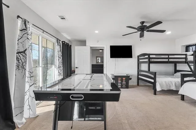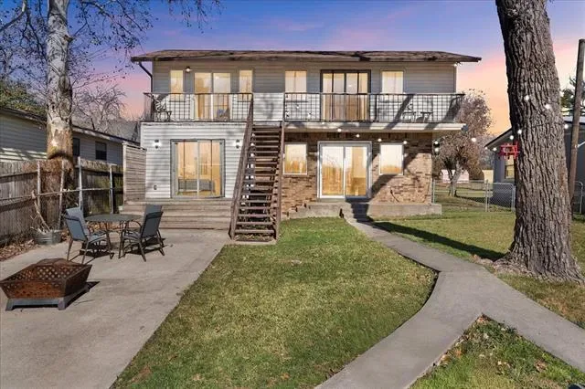 Located just minutes from TX-199 in Azle, this thoughtfully updated home offers a true lake lifestyle with direct access to Eagle Mountain Lake and a private dock, perfect for boating, fishing, or relaxing by the water. The fenced backyard features multiple outdoor living spaces designed for both entertaining and everyday enjoyment, including a covered upper porch off the secondary bedrooms and a lower-level patio connected by stairs. A one-car carport at the front of the home provides convenient parking. Inside, the open-concept layout is bright and inviting, anchored by a fully updated kitchen with a center island, breakfast bar, and an oversized utility room that also functions as a pantry with additional shelving. The kitchen flows seamlessly into the dining and living areas, where recessed lighting and large windows bring in abundant natural light. The main-level primary suite offers privacy and comfort with an upgraded vanity, walk-in shower, walk-in closet, and a nearby half bath for guests. Upstairs, two spacious secondary bedrooms each include their own full bathroom. One bedroom is oversized, offering flexibility as a guest suite, game room, or additional living space. With no HOA, this property provides the freedom to enjoy and personalize your space. Conveniently located near public boat ramps and Shady Grove Park, which offers a lakefront beach, fishing pier, playground, and walking trails, and just minutes from shopping, dining, and everyday essentials.