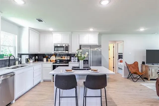 NO HOA! Only 6 months old! This attractive home with an inviting front porch is happily situated on an ONE ACRE lot nestled on a cul-de-sac. Built in 2025 with the builder’s 1-2-10 warranty still in place, this home is sure to check all of your boxes. Large open floorplan with wood look tile throughout and carpeted bedrooms. The kitchen boasts stainless steel appliances and granite countertops as well as an large island. The kitchen sink has views of the private covered porch and backyard. The primary bath offers dual vanities, linen storage and walk-in tiled shower. Primary bedroom has overized walk-in closet. The laundry room opens out onto the carport and has an large storage closet. The secondary bedrooms are split from the primary bedroom. Why wait for new construction when you can have like new now? Survey is available. VA assumption for qualified veterans available. Azle ISD.