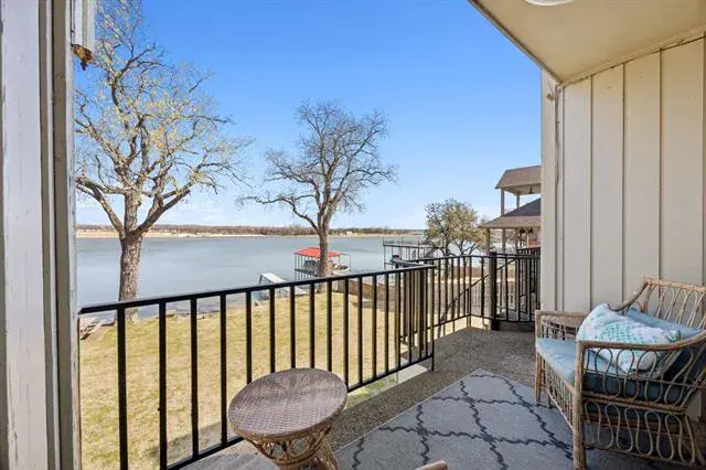 Open Water Eagle Mountain Lake Condo, remodeled and well designed, just move in and enjoy full time or as a weekend getaway! The Timbers Condos have their own private community dock with large lake front green space to enjoy the water and the amazing sunsets. Eagle Mountain Lake Marina is just over a mile, 4 minutes, away as well as multiple lake beach parks within a short drive. Two story condo (starts on second floor) with two balconies overlooking the lake and another balcony off the second primary overlooking front green space. Kitchen with eat in area opens to spacious living area with amazing water views and a balcony over looking the lake. Upstairs you have both of the primary bedroom suites each with their own bathroom and balcony. There is a large personal front door patio area with exterior storage closet as well. The condo is a part of a very small complex, very quiet and peaceful neighborhood. Only 20 minutes (drive) to Ft. Worth Boat Club and 25 minutes to the Ft. Worth Stockyards and all the dining and entertainment of downtown Ft. Worth! (About 37 minutes to DFW airport.) Eagle Mountain Lake is an active – true Lake Life getaway still close to town!