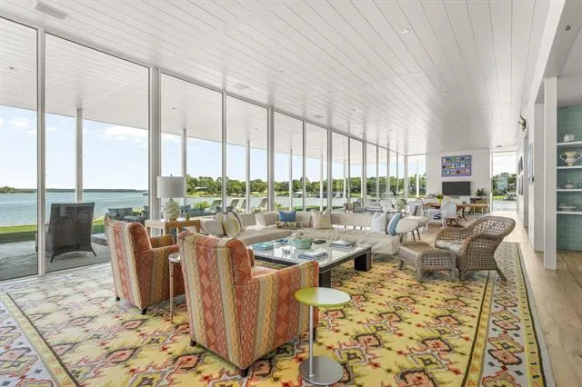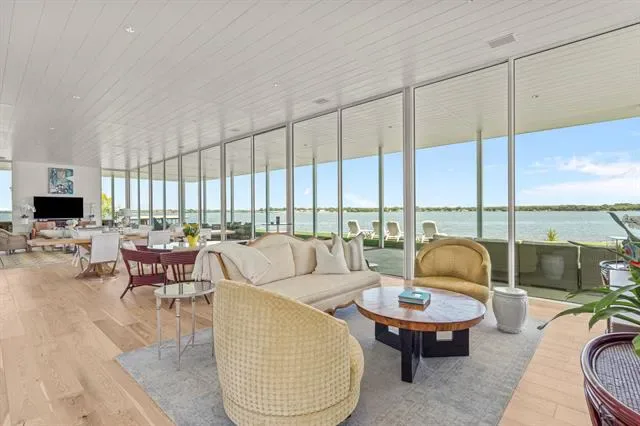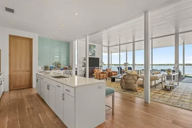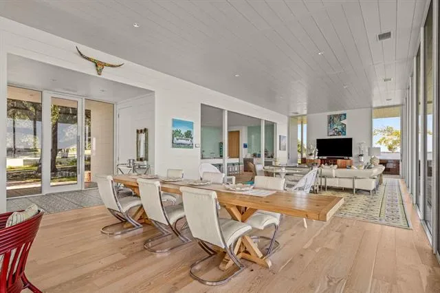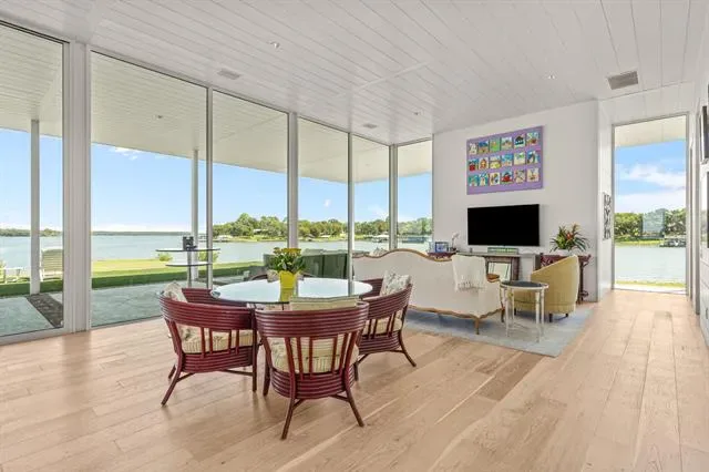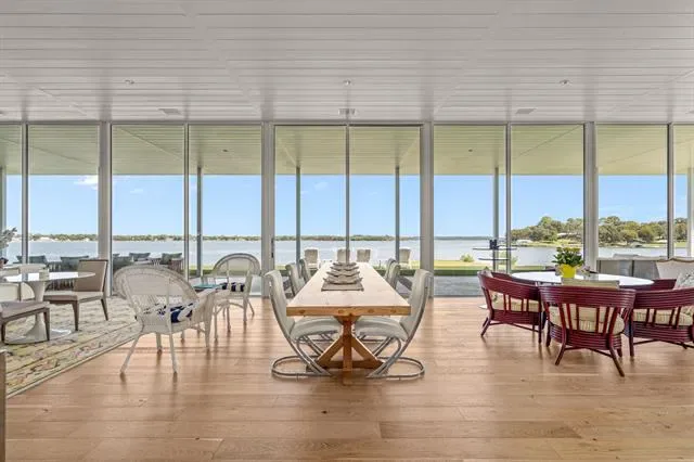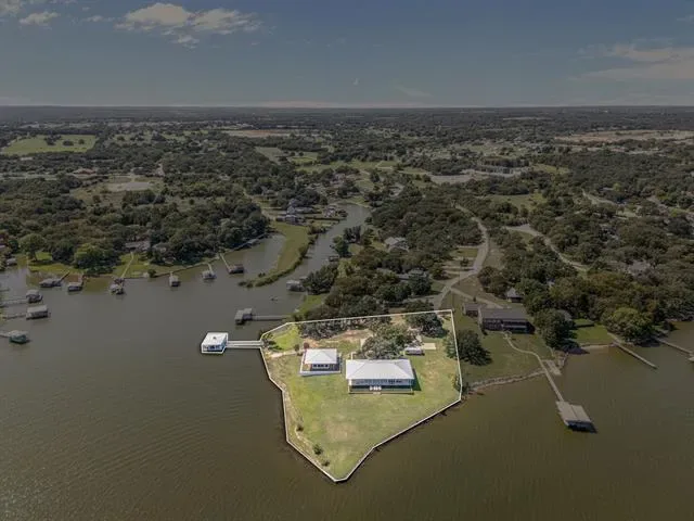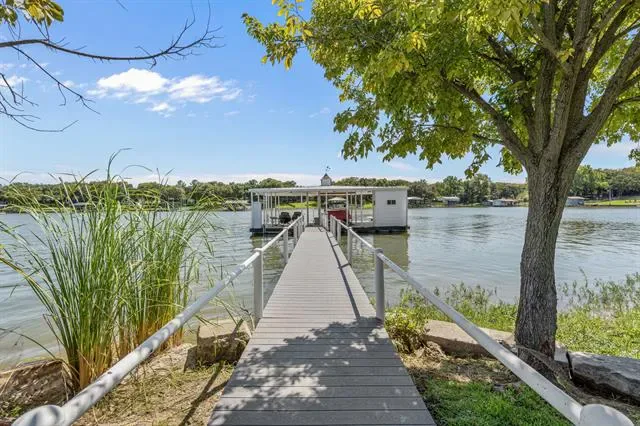 This single-story Eagle Mountain Lake retreat, designed for effortless lakeside entertaining, sits gracefully on 2.164 acres with 750 feet of waterfront. The open-concept layout is framed by floor-to-ceiling windows that showcase sweeping lake views, while a chef’s kitchen boasts a marble island, Miele appliances, and four refrigerator drawers, with a laundry room that doubles as a secondary walk-in pantry. A covered porch wraps around three sides of the home, complete with a built-in bar top and serving area, and beyond the patio a manicured turf yard provides a serene setting for relaxation. The floating dock with boat and jet ski lift enhances the lakefront lifestyle. Prepared for future expansion, the home includes a large attic as well as a separate 1,200-square-foot suite nearing completion, offering panoramic views, private his-and-hers ensuites, and separate closets. Additional amenities include a gated drive with RV and boat parking, plus a boat, and jet skis—making this the ultimate turnkey lake property.