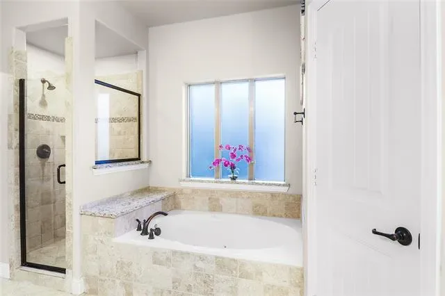 This meticulously maintained residence is situated in a peaceful neighborhood, adjacent to a greenbelt area. On the lower level, you will discover a mother-in-law suite, a home office, a mudroom equipped with a bench and cubbies, along with the kitchen, dining area, and living room featuring a fireplace. The upper level includes a second family room that can function as a media room or playroom, a master suite, two additional bedrooms, another full bathroom, and a laundry room. The entry, kitchen, living room, dining area, and study spaces are adorned with engineered wood flooring. Additionally, there is a tankless water heater. The property offers convenient access to Highway 183 for work, shopping, and dining, as well as the Bedford walking and biking trail.
