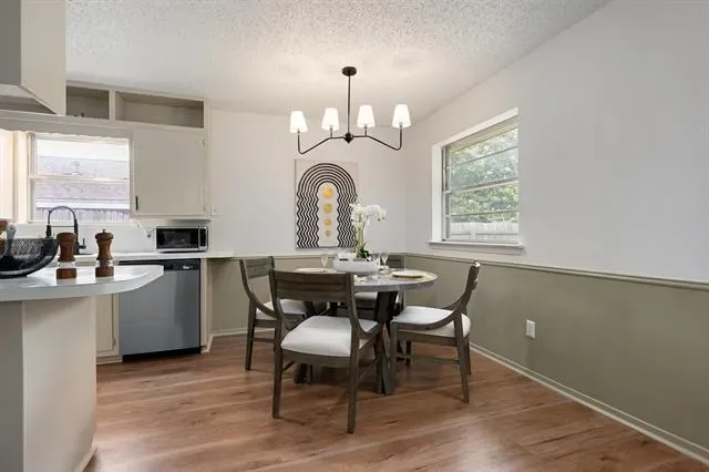 Experience comfort and convenience in the highly sought-after Hurst-Euless-Bedford ISD!!!! This move-in ready 4-bedroom, 2-bathroom home sits on a spacious lot and offers 1,374 square feet of inviting living space. Inside, you’ll find fresh paint, new light fixtures, and new LVP flooring throughout, all complemented by a natural color palette that creates a warm and calming atmosphere. Step outside to enjoy a private fenced backyard with plenty of room for outdoor gatherings, play, or relaxing evenings at home. Attached two-car garage with an expanded driveway providing ample additional parking. With convenient access to DFW Airport, major highways, shopping, and local schools, this home offers the perfect blend of comfort and location.