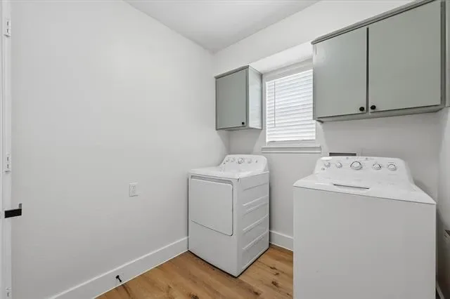 Enjoy the convenience of a dedicated laundry room with washer and dryer included if desired. Built-in cabinetry adds both style and functionality.