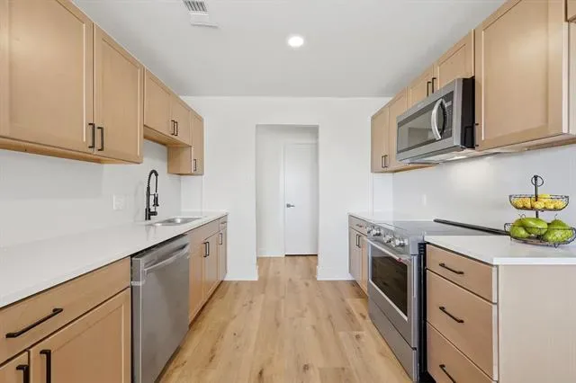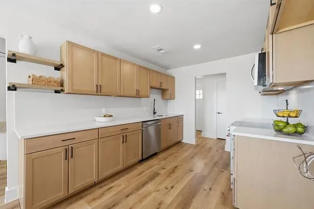 The heart of the home is the fully renovated kitchen, featuring new cabinetry, quartz countertops with a matching quartz backsplash, and stainless steel appliances—perfect for everyday living and entertaining. Luxury vinyl plank flooring runs throughout, with wider and longer planks that create a more upscale, modern feel. Upgraded faucets and fixtures add a polished touch throughout the home.