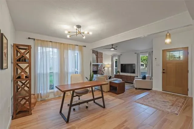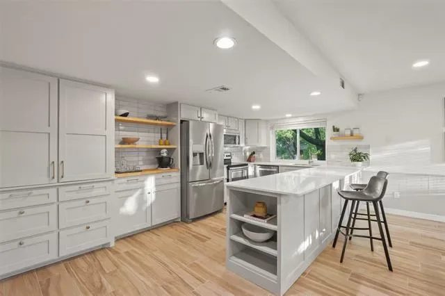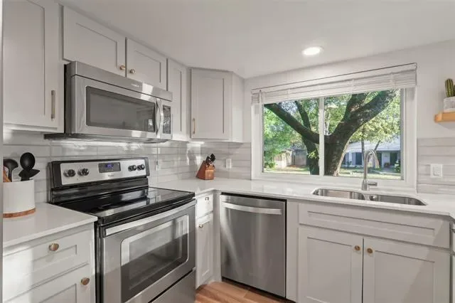 **OPEN HOUSE SUNDAY MARCH 29TH FROM 1-3PM** Tucked away on a quiet cul-de-sac in highly desirable North Bedford, this updated home is completely move in ready with convenience just minutes from Glade Parks, shopping, dining, and a new HEB coming soon. Or quick drive to Genrations Park which offers community events year round, fishing, sports complex, playground and more. Inside, nearly every surface has been thoughtfully renovated, featuring a stunning kitchen with custom cabinetry, quartz countertops, and designer backsplash (2023), along with porcelain tile flooring in the main living areas and new carpet in the bedrooms (2023). The spacious living room is anchored by a cozy wood-burning fireplace, while updates throughout include fresh interior paint, popcorn ceiling removal, updated lighting, doors, and hardware. Major improvements provide peace of mind, including a newer roof, Trane HVAC system (2023), updated appliances, guest bathroom remodel, exterior paint (2025), and a newly poured driveway (December 2025). Enjoy outdoor living on the large back patio, perfect for entertaining or relaxing. This move-in ready home combines extensive upgrades, strong curb appeal, and an unbeatable location in one of Bedford’s most established neighborhoods. Washer and dryer stay with this home. *1-0 LENDER PAID BUYDOWN OR LENDER CREDIT available with preferred lender