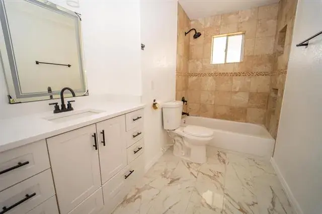 Fully remodeled and ready for move-in 5 bedrooms, 3 full baths! Interior completely new with kitchen and bathrooms gutted and redone. NEW Cabinets with new Appliances and, Beautiful Calícate Storm quartz countertops in kitchen and bathrooms! Both showers boast luxury glass doors complimented with the new tile! Primary bathroom features rainfall shower! NEW Flooring throughout and tiles in the bathrooms! Huge 2 living room and open layout! Abundant lighting with modern light fixtures! Large private backyard with new fencing on side elevations perfect for the families'' outdoor needs! Great location location location