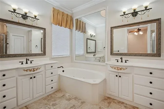 This beautifully maintained garden home offers the perfect mix of charm, elegance, and modern convenience in the conveniently located and highly sought after Fairmont Villas. PRICE SIGNIFICANTLY REDUCED TO ALLOW BUYER TO UPDATE AS DESIRED. The kitchen has granite countertops and plenty of prep space, perfect for hosting or everyday living. It has a large breakfast bar and an island and is open to the spacious dining room and living area with fireplace. There are double doors to the cozy covered patio. This stunning residence boasts pristine hardwood floors, solid core doors, and exquisite millwork throughout. The functional layout includes split bedrooms and lives like a one story home with kitchen, living and dining areas, two bedrooms and two full baths on the main floor. The primary bedroom suite has a large spa bathroom and walk in closet plus access to another covered patio with water views. Upstairs has a large additional bedroom or bonus room with an ensuite full bath. In addition, there is a large walk in storage space.