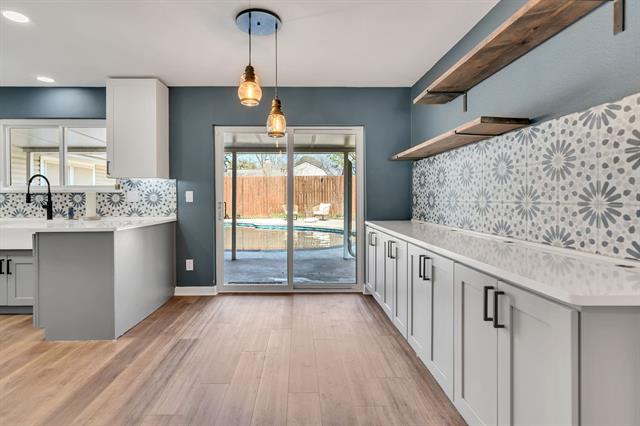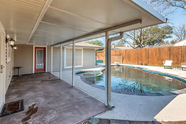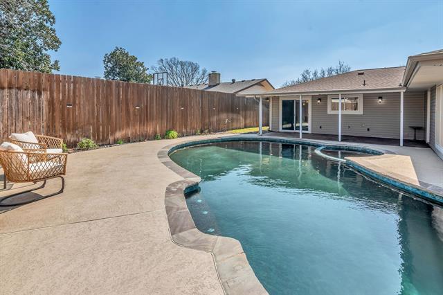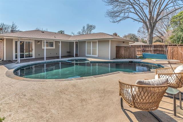 HURRY TO VIEW THIS GORGEOUS MODERNIZED HOME WITH BEAUTIFUL REMODELED DIVING POOL AND SPA! Extensive Upgrades Include Fully Remodeled Kitchen' Updated Bath' New Vinyl Plank Flooring, Baseboards And Trim' Updated Wall Texture' Fresh Paint' Upgraded Lighting' Solid Core 5-Panel Doors' New Electrical Panel' Recent Roof' Remodeled Diving Pool And Spa And More! Meal Preparation Is A Joy In The Stunning Remodeled Kitchen That Features Modern Shaker-Style Cabinetry, Quartz Countertops, Designer Tile Backsplash, Farm Sink, New Double Ovens, Glass-Surface Cooktop And Built-In Microwave, All Accented By Recessed Lighting. Keep An Eye On The Kids In The Pool Through The Large Kitchen Windows. The Attractive Dining Area Overlooks The Pool And Patio And Offers Ample Storage Space And A Serving Area That’s Ideal For Entertaining And Family Gatherings. A Unique Beamed, Raised Ceiling Defines The Generously-Sized Living Area Where Your Comfort And Enjoyment Are Enhanced By A Brick Fireplace, Wet Bar, Sound System Speakers, Recessed Lighting And Designer Ceiling Fan. The Massive 23-Foot Owner’s Suite Accommodates All Your Oversized Bedroom Furniture And Boasts A Perfect Spot For A Sitting Area, Home Office, Exercise Equipment, You Name It. In The Owner’s Bath, You’ll Appreciate The Unique Vanity Design With Abundant Storage Space. All Bedrooms Feature Beautiful Stained, Polished Concrete Floors, And The Two Sizable Secondary Bedrooms Share An Updated Bath. Family Memories Will Be Made At The Beautiful Remodeled Diving Pool And Spa Where There’s Abundant Pool Deck Space For Everyone To Spread Out. The Sizable Covered Patio Is Ideal For Entertaining And Ensures You Always Have Shade When You Want It. Grow Your Own Fresh Vegetables And Herbs Or Plant Your Favorite Flowers In The Back Yard Garden. It’s An Easy Walk To The Elementary School And Junior High, And There’s Convenient Access To Highways 10, 121 and 183 To Get You Anywhere In The Metroplex. Come Take A Look!