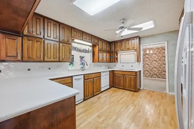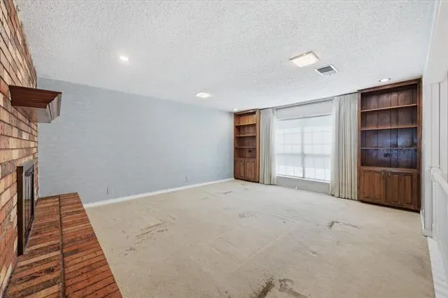 Spacious 3-bedroom, 2-bath, 3-car garage home in a beautiful, heavily treed Bedford neighborhood. With 2,587 sq ft, this property offers great bones and an ideal layout for a remodel. Two generous living areas share a striking two-sided brick wood-burning fireplace, creating a unique focal point and great flow for entertaining. The oversized primary suite features a large bedroom and bath, while the kitchen offers abundant space and storage, ready for your updates.