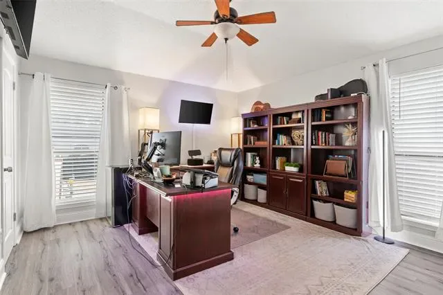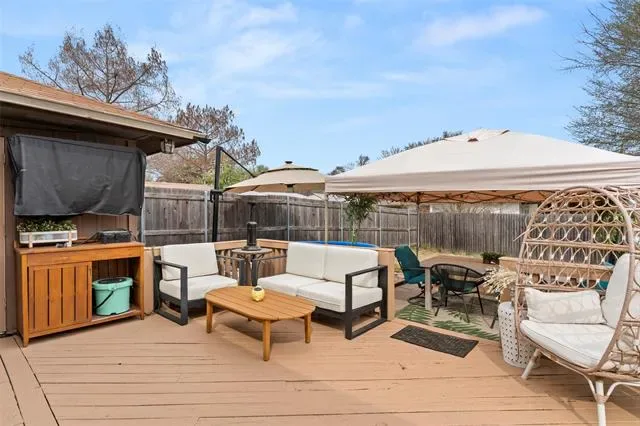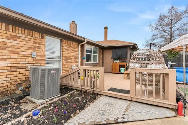 This exceptionally updated and meticulously maintained property located minutes from HWY 121 or HWY 10 is priced to sell. Beautiful flooring graces the main areas as you enter the home and into a spacious living area with vaulted ceilings, bright and sunny windows and a popular open concept floor plan. A wood burning fire place with a marble topped hearth and a decorative carved wood frame accents the corner of the living area. Masterful kitchen with stainless steel appliances, granite counters, tons of cabinets, walk in pantry, and cozy eat in breakfast area that overlooks the backyard. Primary bedroom with laminate flooring leads to a lavish en suite featuring double closets, vanity, tub and shower combination and gleaming marble flooring. Secondary bedroom also has plenty of closet space, beautiful flooring, and breezy ceiling fan. Outside is a true Texas paradise with wooden deck, storage shed and covered detached 1 car car port. Plenty of space to entertain and relax. HVAC replaced 2022. Water heater replaced 2021.