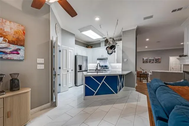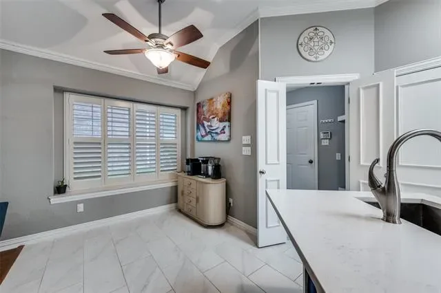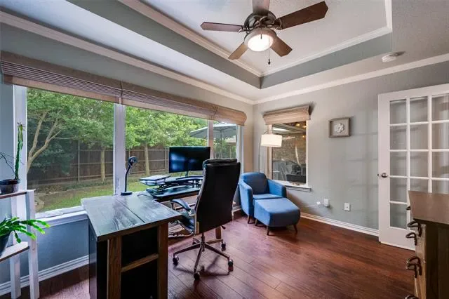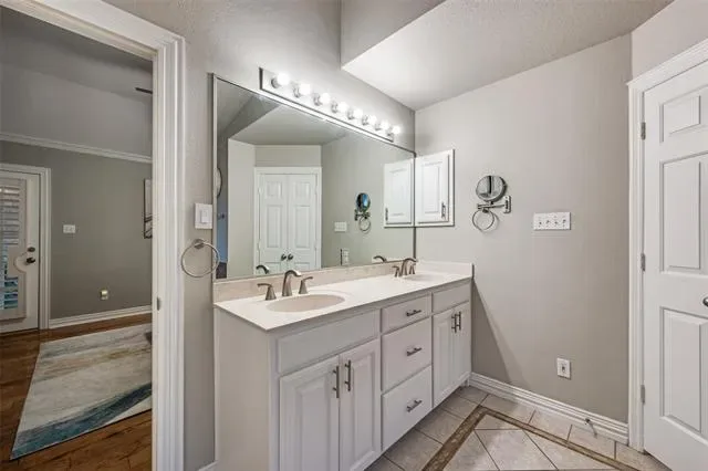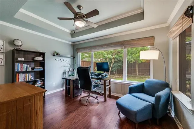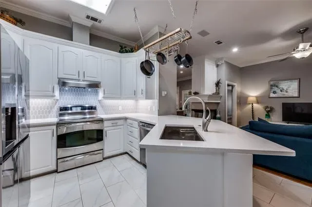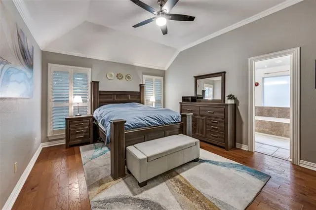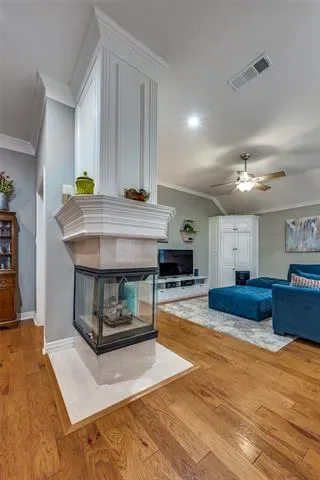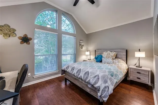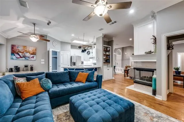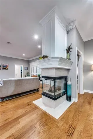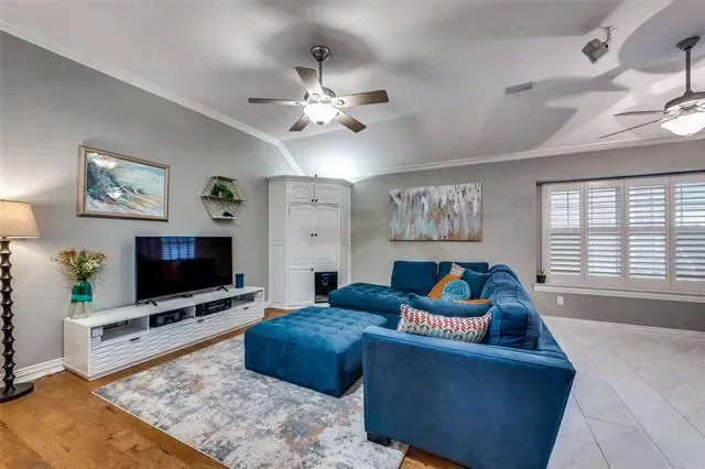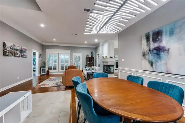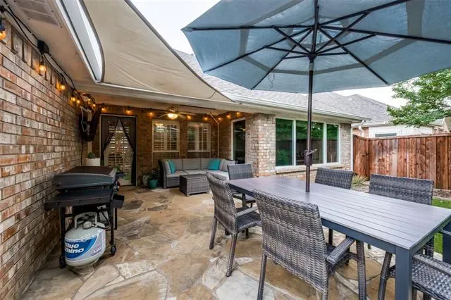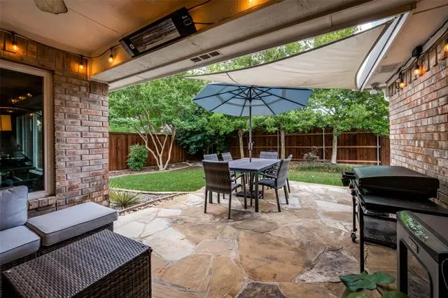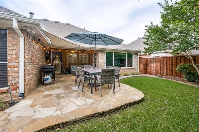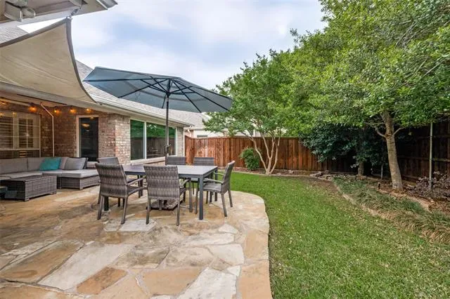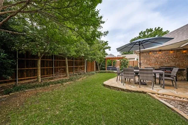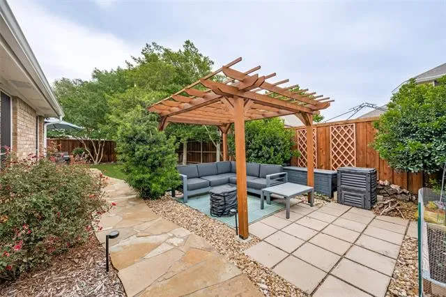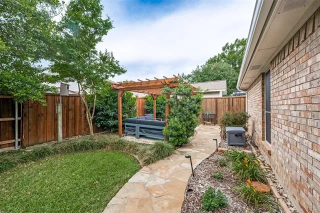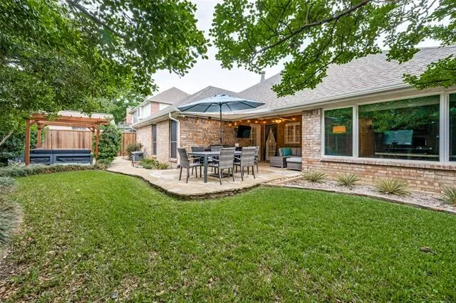 Beautiful one-story River Forest home on a cul-de-sac lot in a prime midcities location. Gorgeous curb appeal with flagstone & brick exterior. Upon entering, there are two spacious living areas, open formal dining area and wood floors throughout. Plantation shutters & crown molding create a custom & warm space. The inviting & modern double-sided see-through glass fireplace separate the living from the kitchen & family room. Recently renovated kitchen with quartz countertops, breakfast bar, updated cabinets, stainless appliances, & breakfast area. Nice corner cabinet in family room is perfect for extra storage. No carpet in this home makes for a low maintenance updated layout. Primary bedroom has outdoor access, high ceilings & large primary bath with double vanity, jetted tub & oversized walk-in frameless shower. Three additional bedrooms are perfect for growing family or to be used as a study. The backyard is a private setting with flagstone sidewalk, covered patio, landscaping & mature trees. Adorable, covered pergola addition is great for lounging and enjoying outside. Roof replaced 2024.