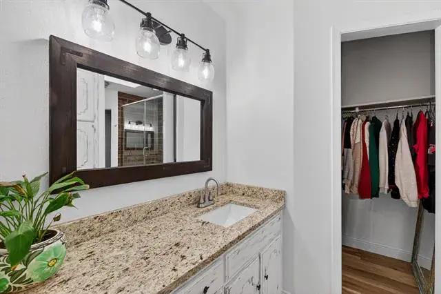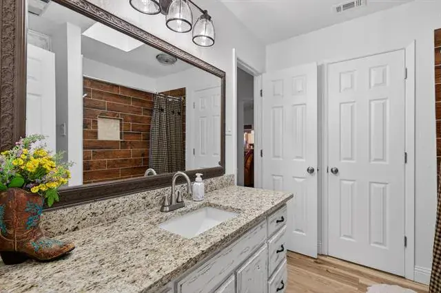 Beautifully Updated home in highly sought after HEB school district! This lovely home features: 3 bedrooms (2 guest), 2 full bathrooms (1 guest), open concept living-dining-kitchen areas, the full guest bathroom is a jack & jill with shower-tub combo, the primary bedroom is large and opens to the en-suite bathroom, the primary bathroom includes 2 split vanities – 2 walk-in closets – large shower – built-in cabinets, the living room is sizeable with a cozy brick wood burning fire place, the eat-in kitchen includes ss appliances – granite counter tops – separate coffee bar or additional butlers & pantry area, washer and dryer hookups between garage and kitchen, enclosed sun room (not included in square footage) for greater living space all year long, large wooden privacy fence covering the whole backyard, beautiful pool and patio area for relaxation and entertaining. Recent updates include new roof, paint, flooring, tile in showers, lighting and ceiling fans, wooden fence, and water heater. Located within minutes of schools, restaurants, shopping, entertainment, the DFW Airport, and about 25-30 minutes to Fort Worth or Dallas. This one is not to be missed!
