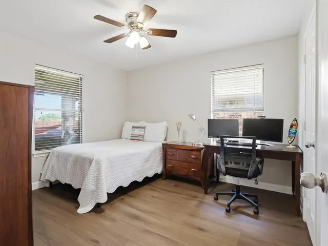 Turn-key and move-in ready, this beautifully updated 3-bedroom, 2.5-bath home with a dedicated home office offers the perfect blend of modern finishes, thoughtful upgrades, and functional living. Kitchen features granite countertops, *Undermount sink, Designer Backsplash, Stainless Steel Vent-A-Hood * Durable Luxury Vinyl Plank Flooring throughout, Updated Bathrooms * Floor plan has Split-Bedroom Design for added Privacy *In-Law Suite or Secondary Primary Bedroom, Laundry Room, and Three Skylights that fill the Home with Natural Light. Major System Updates include HVAC (2021), New Water heater (2026) * Enjoy exceptional outdoor living with a sparkling Pool, Cozy Firepit, * Beautifully Landscaped Backyard * Solar Lighting designed for Relaxing and Entertaining. Private Backyard Putting Green adds a fun and Unique Touch that is Perfect for Practicing your Short Game or Hosting Guests. No neighbors Behind You * 8-foot Stained Privacy Fence (2024) * Full Sprinkler System Front and Back. Convenient access to Harwood Junior High, Including Nearby Tennis Courts * Jogging Track. 2 miles from Generations Park at Boys Ranch in Bedford, featuring a 68-acre park with a Fishing Lake, Jogging Trails, Baseball Fields, and the YMCA with Indoor Pool and Outdoor Water Park. Conveniently located to Hwy. 121, Hwy 183 and just 12 miles from Dallas Fort Worth International Airport. This home is truly turn-key and ready for its next owner—offering style, comfort, and standout indoor-outdoor living. TOTAL SQUARE FOOTAGE DOES NOT INCLUDE THE HOME OFFICE WHICH WAS ADDED.