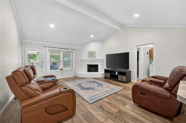 This 3-bedroom, 2-bath home offers a practical layout, thoughtful updates, & outdoor features that add flexibility for everyday living. The living room is a standout space with vaulted ceilings, wood-look tile floors, & a white brick wood-burning fireplace that gives the room character without sacrificing function. Double-pane Low-E vinyl windows bring in natural light & add energy-efficient comfort throughout the home.