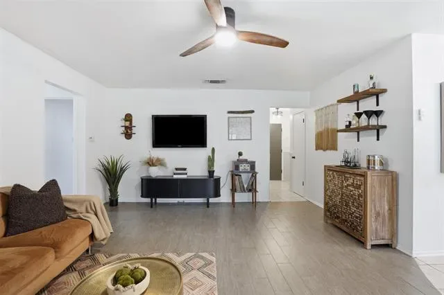 This charming 4-bedroom, 2-bath home is tucked into a well-established neighborhood filled with beautiful mature trees on a large lot. The flexible fourth bedroom could be a home office, guest room, or whatever fits your lifestyle. Out back, you’ll find a spacious yard with a large screened-in patio perfect for relaxing or entertaining, plus a storage shed for all your extras. All of the bedrooms and bathrooms have been updated. There’s also a laundry room right off the kitchen and a two-car attached garage. You’ll love the location with easy access to the Chislom Trail Parkway, just minutes from great dining, shopping, sports complexes and Benbrook Lake.
