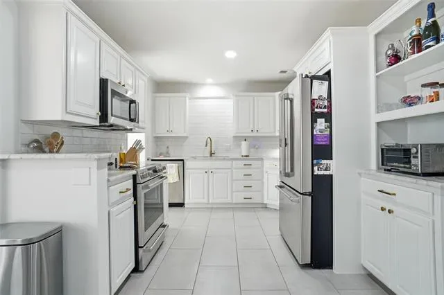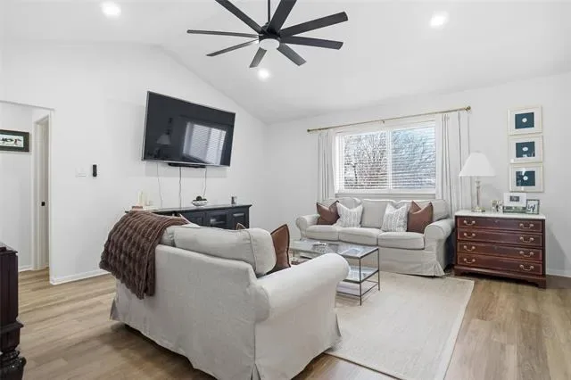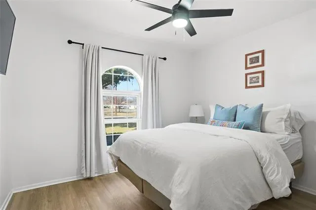 Incredible, immaculately remodeled home in the heart of Benbrook. This custom home boasts four large bedrooms with a split arrangement for privacy. The spacious living room features a cathedral ceiling with upgraded recessed lighting and a pretty view into the backyard. The cozy floor-plan flows from the living room into the expertly appointed kitchen with top of the line new quartzite countertops, Cafe stainless steel appliances, and so much more. There is a spacious, walk in pantry tucked away off of the kitchen. The oversized sun-room with wrap around windows is a dream with natural light flowing in, creating the perfect transition from the outdoors to the classy, elegant interior of this home. Luxury vinyl plank flooring, porcelain tile, all new interior and exterior paint, a new hot water heater, updated windows, updated front and back doors, recently replaced roof, updated electrical plugs and switches, and so much more. Fine craftsmanship on display in each of the two bathrooms featuring luxury finishes from quartz countertops to custom tiled showers. Fall in love with this property for its designer, quality finishes, solid bones, and this picturesque Benbrook neighborhood.