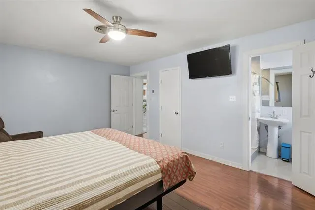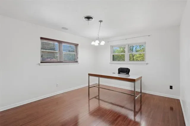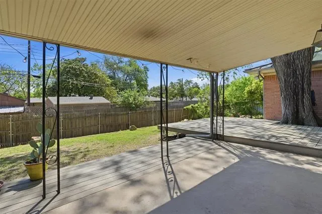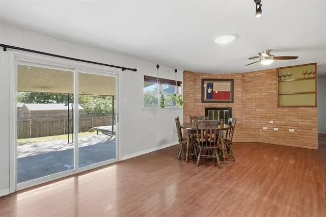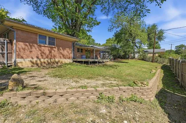 Welcome to this charming 4-bedroom, 2-bath ranch-style home located in Brooks-Moreland Addition of Benbrook. Built in 1959 and offering 1,912 square feet, this single-story property sits on a spacious, tree-filled lot just under a quarter acre. Inside, you’ll find a functional layout with a generous living area anchored by a cozy brick fireplace with gas logs, perfect for relaxing or entertaining. The kitchen features an eat-in dining space, electric cooktop and oven, and is plumbed for gas—offering flexibility for future upgrades. A dry bar and decorative lighting add character and convenience. The home offers four well-sized bedrooms, including a primary suite with built-in cabinetry and ample storage. Flooring includes a mix of wood and ceramic tile throughout. Step outside to enjoy the covered patio and mature trees that provide shade and privacy, creating a peaceful backyard setting. Additional highlights include a metal roof, central HVAC, skylights, rain gutters, and an attached garage with opener. Located within Fort Worth ISD and just minutes from local amenities, this property offers a great opportunity to own a well-maintained home in a desirable, established neighborhood. Upgrades include, foam insulation, metal roof, 4-ton Trane HVAC. Schedule showings today through BrokerBay.