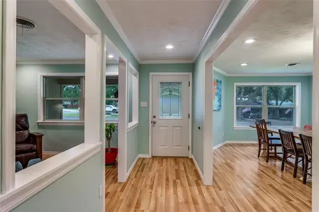 Stylish design and thoughtful updates grace this home nestled in the heart of north Benbrook on a corner lot. Upon entry to the home, one is greeted with an entrance flanked by the formal living and dining rooms. The bright and open kitchen boasts an abundance of counter space and cabinetry. It overlooks the spacious family room that leads to the backyard. The sellers improved the home’s original layout with a redesign of the primary bedroom and bath adding spacious functionality. Additionally, part of the garage was converted to a separate laundry room with sink, room for refrigerator or freezer and storage. The utility room has central heat air conditioning. Garage could be reconverted to a two-car garage. The home enjoys an expansive covered back porch for outdoor entertaining and relaxation. The sellers upgraded much of the electrical and plumbing throughout the home. New double pane windows installed 2018. The home enjoys quick access to Loop 820, Interstate 30 and Fort Worth.