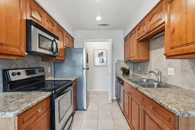 Enjoying privacy, quiet location, and a lovely view of the wooded area and small creek and green area. This townhome is not to be missed! Instead of overlooking a parking lot, this unit is rear-facing in the cul-de-sac to the east of the main gate. Centrally located near Waterside, Fort Worth Country Day School, Clear Fork, and major arteries making easy work of any destination. Open design, freshly painted, granite countertops in kitchen and bathrooms, woodburning fireplace, full size utility area and a delightful courtyard patio overlooking the creek and woods. Windows were recently replaced. (Big plus!)