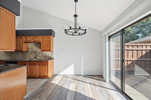Approximately $40,000 in recent renovations make this townhome truly stand out. Major upgrades include a new electrical panel with whole-house surge protection, new A-C, furnace, and thermostat, luxury vinyl plank flooring throughout both levels, and fresh paint on walls and woodwork. The kitchen has been enhanced with a high-end double-oven range, upgraded faucet, and a striking dining-room chandelier. Adding even more value, the HOA is scheduled to replace the patio fence in January 2026. Nestled in the gated Cedar Creek community, this stylishly updated townhome offers contemporary design and everyday comfort in a prime Central Fort Worth location. Light luxury flooring flows throughout the home (excluding bathrooms), complemented by modern light fixtures and ceiling fans that enhance the home’s clean, updated aesthetic. Bright, airy interiors create an inviting atmosphere throughout. The kitchen is a standout feature, showcasing stainless steel appliances, granite countertops, and elegant lighting—perfect for both casual meals and entertaining. Designed with flexibility in mind, the home features two bedrooms with ensuite baths, one upstairs and one downstairs, making it ideal for roommates, guests, or a private home office setup. Sliding glass doors open to a private courtyard, perfect for relaxing with a book, gardening, or grilling—completing this move-in-ready home that blends modern updates, comfort, and location seamlessly.