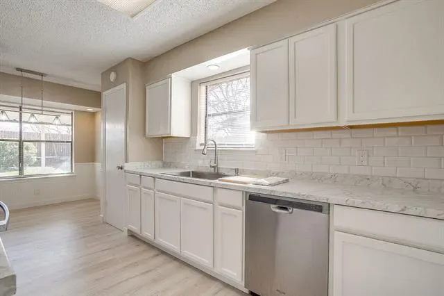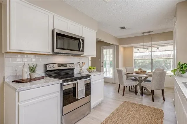 Seller offering up to $7,000 toward buyer closing costs or interest rate buy down. Step into modern sophistication and timeless comfort with this stunning, move-in-ready Benbrook gem, framed by a graceful large tree and updated landscaping! Extensively updated for 2026, this home has been meticulously curated to deliver a seamless, turn-key living experience. ELEGANT INTERIORS: The heart of the home is a light and bright kitchen designed for the culinary enthusiast, boasting sleek countertops and stainless steel appliances. The open-concept living space impresses with soaring vaulted ceilings, designer light fixtures, and a striking brick fireplace anchored by a classic white mantel. Throughout the home, a fresh neutral palette is complemented by luxury vinyl plank floors. PRIVATE RETREATS: Escape to the primary suite—a true sanctuary featuring an oversized bedroom and ensuite bath and a walk-in closet. Even the garage has been elevated, featuring fresh paint and a durable, professional finish. OUTDOOR OASIS: Rarely do you find this level of privacy' with no rear neighbors, your expansive backyard is a secluded paradise. Entertain in style on the covered patio all surrounded by a newer privacy fence. PRIME LOCATION:A commuter’s dream with effortless access to I-20, you’re also just minutes away from Benbrook’s premier golf courses, scenic parks, and bike trails.
