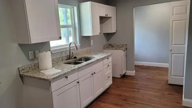 Cute and affordable! So much is brand new, the windows the doors this home is fully rewired with a brand new hvac and water heater along with new kitchen cabinets and all new light fixtures and fans. Buyers will see an appealing property with intriguing architecture that you do not find often in DFW. House sits on a large lot with backyard access, a workshop storage building with additional storage in the garage. Kitchen cabinets and a few other items are still being completed