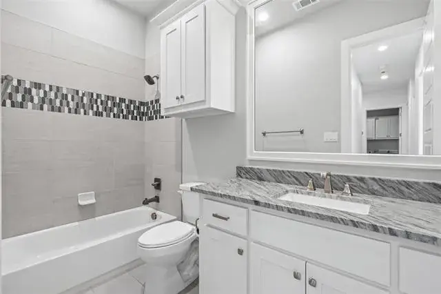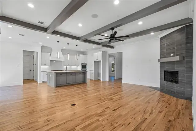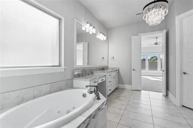 This home has a spacious floorplan that opens up to the dining room, living room, and kitchen. This open concept makes it a great entertaining space. The home features natural wood floors, granite, surround sound speakers in living room and dining room, and quartz countertops with new freshly hand painted cabinets in kitchen and bathrooms. The master features a walk-in closet, spacious two-person shower, jetted tub, and a his and her vanity. The master is an oversized bedroom made for a seated area. This home comes with a beautiful flex room that sits right across from the master which has top to bottom mirrors on each side. This property comes with a gas fireplace in the living, built in KitchenAid appliances in the kitchen, and quartz countertops. The home also has a spacious office area located left of the entry way. All rooms come with new carpet, and the home comes with new light fixture on the interior and two new light fixtures in the front. The backyard of the property comes with an oversized patio, ceiling fan, surround sound speaker system, and a fireplace.