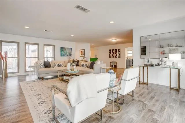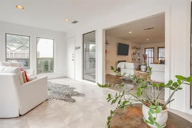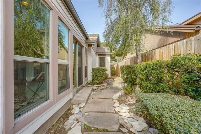 Minimal lot line ONE STORY in Mont Del close to Trinity Trails and Waterside shopping center! The property has NO grass so no mowing needed, but attractively landscaped with ground cover vines, shrubs and old growth live oak trees. There is a private, gated courtyard in the front. Upon entry, an attractive modern design welcomes and provides efficient living. The family room is generously sized with a fireplace and includes a wet bar for hosting. Off the family room, sits a large sunroom perfect for plants, sipping coffee, reading and enjoying the views of the outdoor space. The kitchen opens to dining with views of the back. Split bedroom floor plan. Substantial primary bedroom with an attached bath and a large walk in closet. The courtyard provides privacy with all windows looking out into garden backyard with flagstone walkways. The oversized two car garage with built in cabinetry has space for a deep freeze and refrigerator. Great property at a great price!