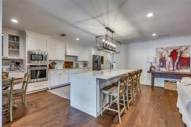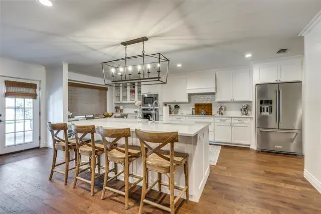 BACK ON THE MARKET DUE TO NO FAULT OF THE SELLER!!! Nestled on a quiet, corner lot in the coveted Ridglea Country Club Estates with beautiful trees. This 4-bedroom, 3-bathroom house has an open floorplan with a large living room and hardwood floors, perfect for hosting parties. The recently renovated kitchen has brand new shaker-style cabinets and quartz countertops along with a beautiful island, farmhouse sink, and stainless-steel appliances. The recently renovated master bathroom boasts a glass-framed shower, and quartz countertops with dual sinks. The other two recently renovated bathrooms were also renovated with new shaker-style cabinets. The outside features a brand-new sprinkler system, covered gutters, and landscaping to make the yard look beautiful year around. There is a backyard patio with a covered pergola for entertaining outdoors, as well as an electric gate fence.