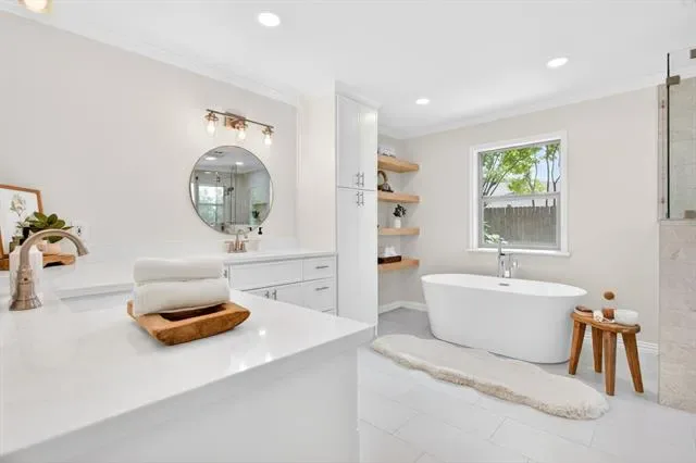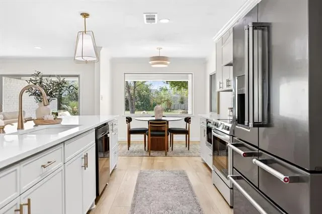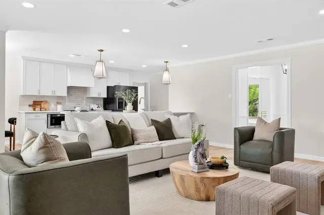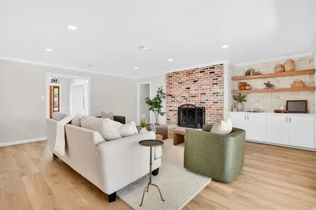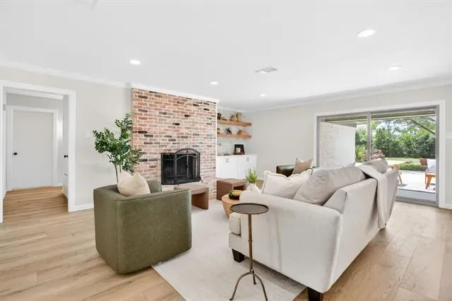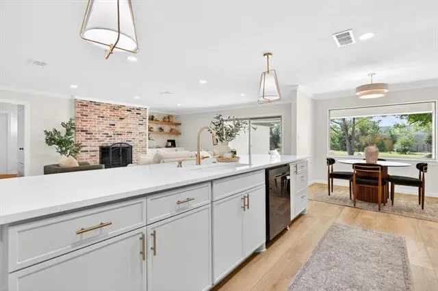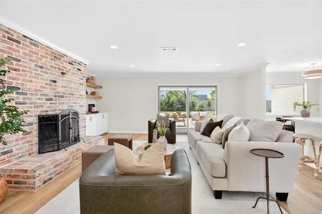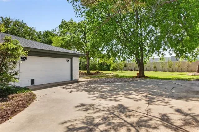 Residing on a premier street in Ridglea Country Club Estates, this beautifully renovated one-story home blends classic architecture with fresh, thoughtful design. Offering 4 bedrooms, 3 full baths, and a 2-car side entry garage on nearly half an acre-treed lot! This home showcases a seamless open-concept layout centered around a brick fireplace with custom featured built-ins and floating shelves. Expansive sliding glass doors open to the oversized backyard and pool, creating an effortless indoor-outdoor flow ideal for entertaining. Large picture windows fill the front living room, formal dining, and breakfast nook with natural light. The kitchen is a dream with quartz countertops, modern Shaker style cabinets, breakfast bar seating, microwave drawer and pantry. The extensive renovation includes new windows, stainless appliances, landscaping, flooring, paint, lighting, and designer fixtures, all selected to elevate the home’s timeless character. Located just minutes from the golf courses and amenities of Ridglea Country Club, easy access to 183, I-20 and I-30, plus nearby shopping and dining at Clearfork, this property pairs refined living with an exceptional West Fort Worth location!