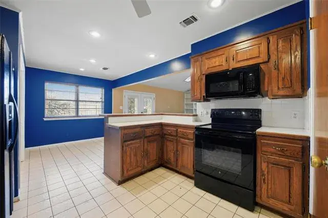 Located in the established Timber Creek Addition, 1721 High Ridge Road has been cared for by the same owners for 23 years and has been thoughtfully maintained during that time, including the installation of a new HVAC system in 2024. This single-story brick home offers 3 bedrooms, 2 baths, with a flexible layout that adapts to a variety of needs. A well-maintained oak tree anchors the front yard and enhances the home’s curb appeal. Natural wood flooring runs through the bedrooms, with tile in the kitchen, living area, and baths. The main living room features built-ins that frame a wood-burning fireplace. Skylights and double doors to the back patio provide abundant natural light. The kitchen overlooks the living area for an open feel. A formal dining room offers versatility and may function well as a home office, second living area, or other flex space. The primary suite accommodates a king-size bed with additional furnishings. Each secondary bedroom includes a window seat that adds character and function. The backyard is fully fenced with a wood privacy fence. The extended-length garage provides additional storage space and includes a workbench area. The property is just minutes from Interstate 20 with convenient access to Fort Worth, shopping, and dining.