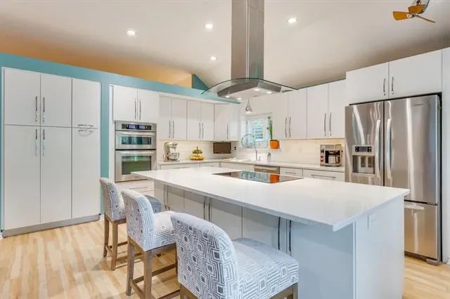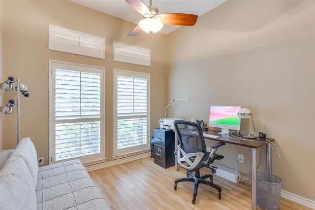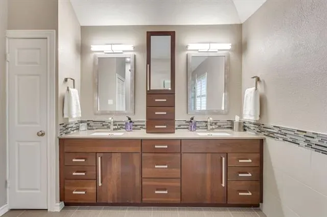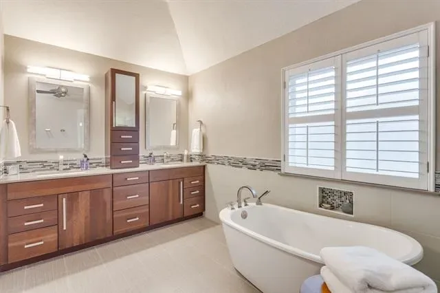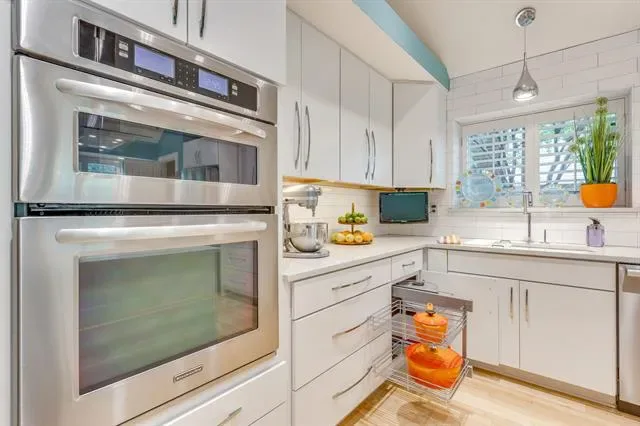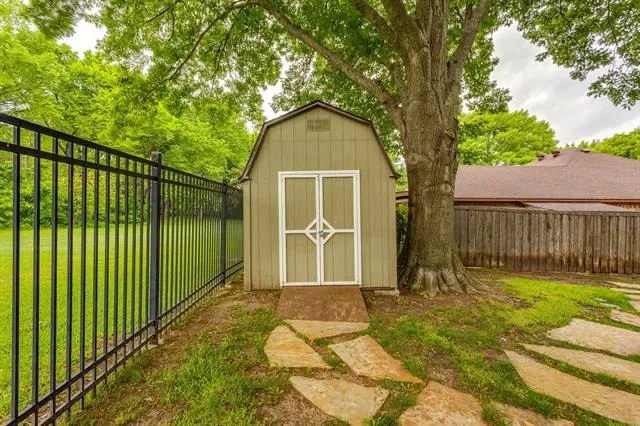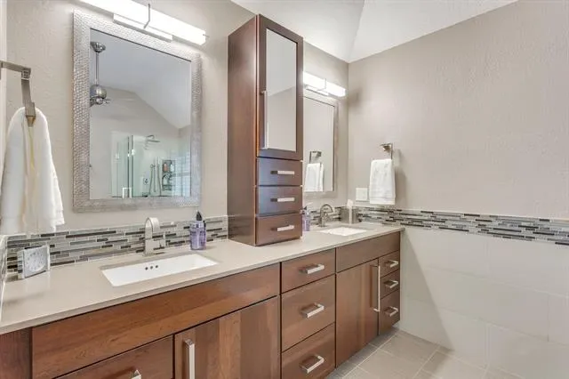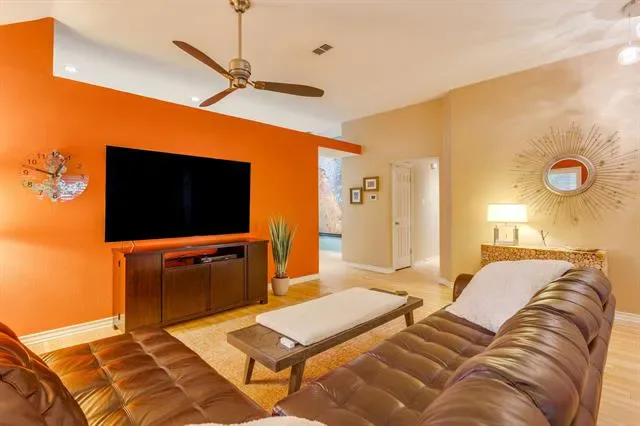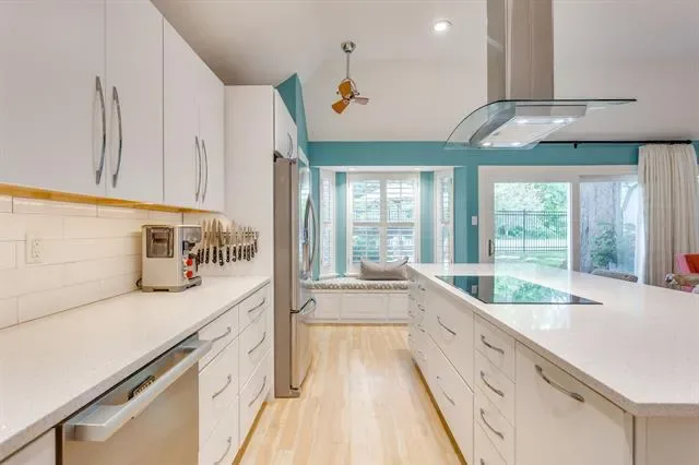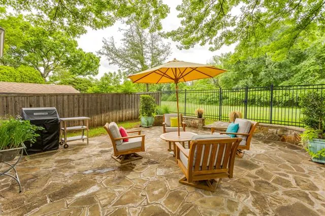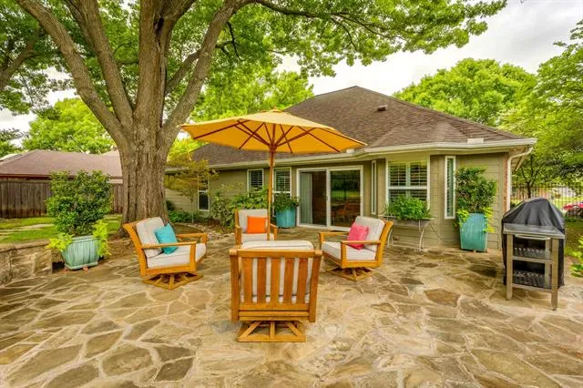 This modern, professionally renovated gem offers a rare blend of sophisticated design and direct access to the best of outdoor living. Located a few yards from the Trinity Trails and Pecan Valley Golf Course, you can simply walk out your back gate to enjoy miles of scenic paths or walk over the bridge to meet friends and play a round of golf! Inside, the home is light, bright, and defined by high-end finishes like commercial-grade vinyl plank flooring and elegant plantation shutters. The stunning kitchen is a chef’s dream, featuring a massive island, breakfast bar, and custom storage solutions like an appliance cabinet and pull-out shelves. High-end KitchenAid appliances, a 2024 Miele dishwasher, and sleek quartz countertops are featured. A cozy bay window seating area, and spacious dining area are open to the kitchen. The peaceful primary suite serves as a lovely retreat, overlooking a professionally landscaped backyard framed by grand Oak trees and a graceful Japanese maple. Relax on the expansive flagstone patio and enjoy the view over a pretty wrought iron fence. Welcome home!
