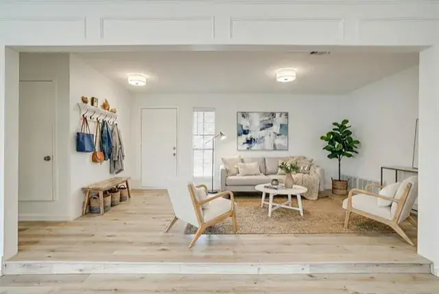 Brick, Living Room, Masonry, Raised Hearth, Wood Burning