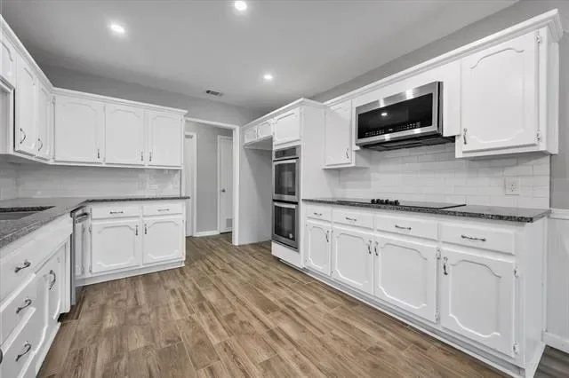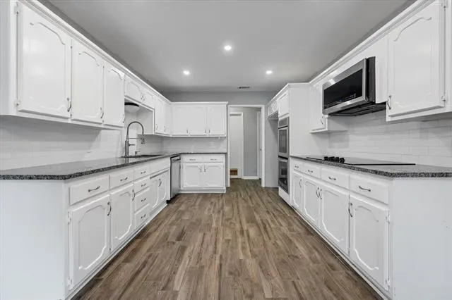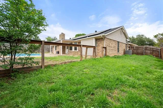 Summer-ready & move-in perfect! This updated 3BD,2BA Benbrook gem offers 1,743 sqft of stylish living with wood floors, fresh paint, and cleaned carpets throughout. The white-on-white kitchen shines with stainless appliances, double oven, and a charming window seat with storage. Both baths updated. Step outside to your private liner pool, ideal for the Texas heat, plus a covered patio for shaded entertaining and a separate dog run. Low maintenance front landscaping. Walking distance to the middle and high school. Keep your energy rates low, with solar panels. HUGE BONUS: Assumable VA loan at under 4% interest, a rare opportunity to secure a below market rate! Solar panels are an assumable loan.