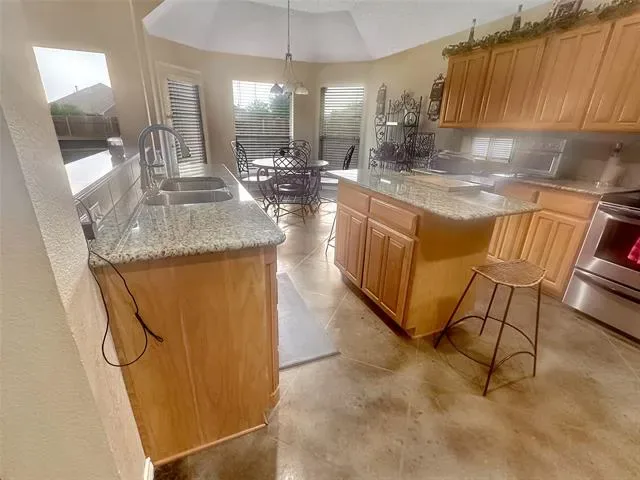 Welcome home to this one-owner Steve Hawkins custom build, lovingly maintained and designed for year-round comfort. The open floor plan features rich stained concrete floors with a soft etched pattern, while carpeted bedrooms add a touch of warmth for cozy winter mornings. Enjoy music throughout the home with built-in speakers that extend to the media room and outdoor spaces. Step out to your private backyard oasis—complete with a pool and waterfall feature, now peacefully winterized and easy to maintain. Outdoor furniture, built-in grill, refrigerator, washer, and dryer all stay! Whether you’re hosting the holidays or relaxing by the fire, this home blends craftsmanship, comfort, and timeless design in one of Benbrook’s most welcoming golf course communities.