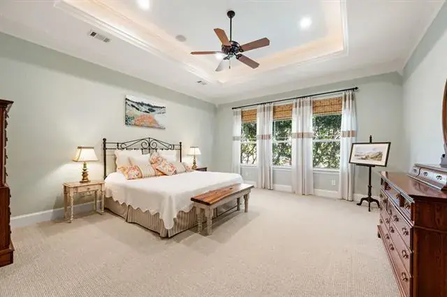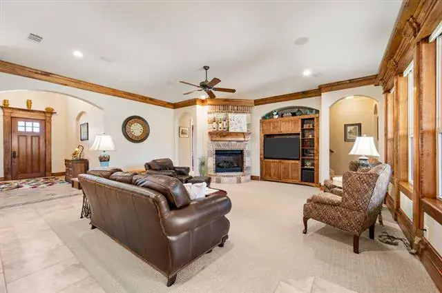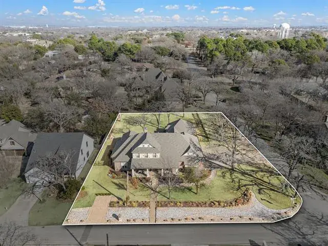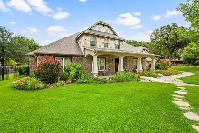 This gorgeous custom home sits proudly on a large corner lot surrounded by lush, mature landscaping and exceptional curb appeal. Designed with both comfort and versatility in mind, the property offers incredible outdoor living spaces—perfect for relaxing evenings, entertaining guests, or simply enjoying the beautifully maintained grounds. Ideal for multi-generational living, the separate guest house is a private retreat of its own complete with a full kitchen, utility room, spacious living room with a stunning stone fireplace, a bedroom featuring a walk-in closet, and a full bath, providing comfort and independence for extended family or long-term guests. The main residence features 4 bedrooms, including one currently used as an office for added flexibility. An upstairs bedroom offers endless possibilities—it could easily serve as a game room, media room, exercise space, second living area, or additional office. A 3-car garage provides ample storage and convenience. At the heart of the home is a gorgeous, oversized kitchen with an expansive center island that opens seamlessly to the main living area—ideal for gatherings and everyday living. The primary suite is exceptionally spacious and truly a private retreat, complete with a spa-like en suite bath designed for relaxation. Thoughtful, upgraded features throughout the home promote healthy living while helping reduce utility costs, blending luxury with efficiency. Located in a fantastic area close to restaurants, shopping, schools, medical facilities, and more, this one-of-a-kind property offers the perfect balance of elegance, function, and convenience. Room dimensions are approximate and should be verified by the buyer.