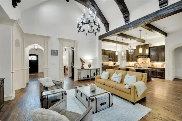 Step into refined luxury in the heart of highly sought-after Colleyville. This stunning custom home offers 5 spacious bedrooms, 5 beautifully appointed bathrooms, and a private study complete with its own fireplace—perfect for working from home in style. From the moment you enter, you’ll be captivated by soaring vaulted ceilings, rich wood flooring, an impressive stone fireplace, and an elegant layout. The gourmet kitchen is equipped with everything needed for every day living and hosting large gatherings. Classy media room on the first floor and a large game room located on the second floor. Situated on nearly half an acre, the outdoor living space is nothing short of exceptional. A sparkling pool and spa are complemented by a cozy fire pit and a roomy patio space with an outdoor fireplace—creating the perfect setting for year-round entertaining. Recent upgrades include a Generac full-home automatic generator, whole-home water softener, reverse osmosis system, fresh interior paint, built in refrigerator replaced two years ago, new dishwasher, and beautifully updated secondary bathrooms.Complete with a 4-car garage and located in one of Colleyville’s most desirable areas, this home truly offers the perfect blend of luxury, functionality, and timeless elegance.