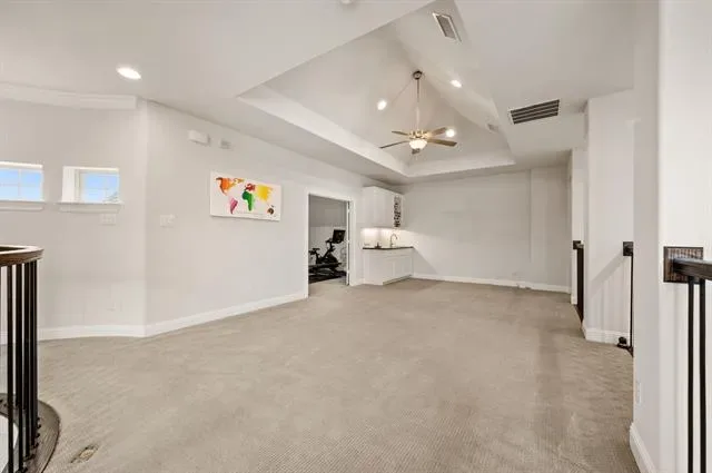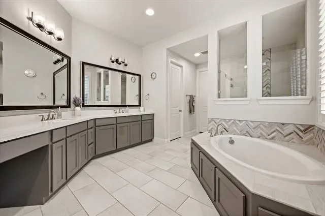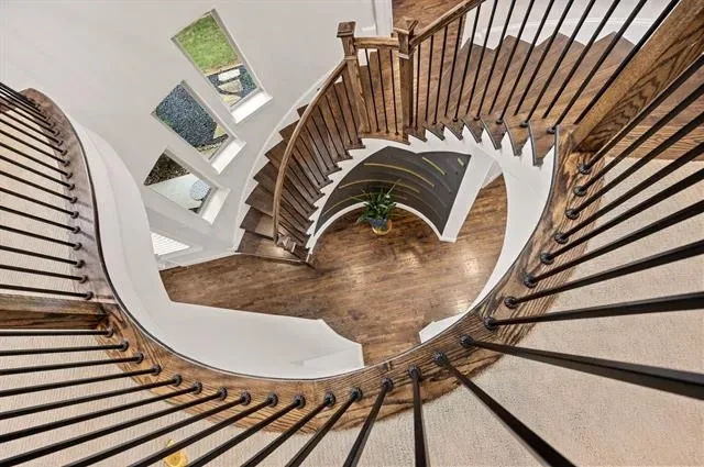 Stunning home built by M-I Homes in the highly sought-after Creekside at Colleyville, offering a unique and versatile floorplan designed for both everyday living and exceptional entertaining. Located in a gated community with convenient access to major freeways, DFW International Airport, and top-rated Grapevine-Colleyville Independent School District schools. From the moment you enter, you’re greeted by soaring 20-foot ceilings that elevate the living, kitchen, and breakfast areas, creating an open and light-filled space. This thoughtfully designed layout features 2 bedrooms downstairs, including a luxurious primary suite, plus 3 additional bedrooms upstairs along with a spacious game room and media room. A private office tucked midway up the elegant curved staircase adds a distinctive architectural touch and ideal work-from-home space. Perfect for entertaining, the home includes a mini bar area, multiple living spaces, and seamless indoor-outdoor flow. Enjoy the outdoors with a charming side courtyard, as well as an oversized covered patio with fireplace overlooking a backyard with plenty of room to add your dream pool.