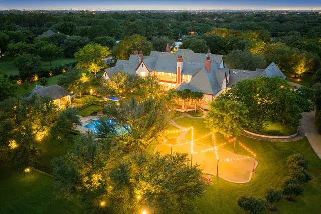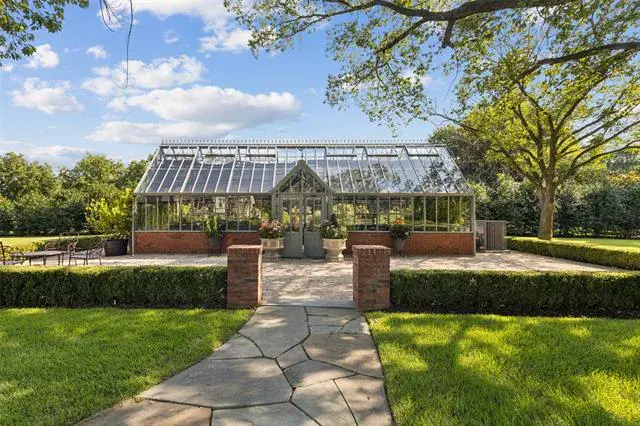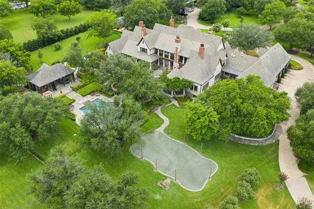 French country elegance meets Texas charm on 7.7 fully fenced acres in coveted Northwest Colleyville. This 9,600 SF estate offers 7 living areas, 5 bedrooms, 7 baths, and endless amenities designed for both everyday living and grand entertaining. Inside you’ll find soaring ceilings, hand-carved fireplaces, Gracie hand-painted wallpaper, a chef’s kitchen with dual islands open to the breakfast area &' oversize family room. The game room with onyx wet bar overlooks the backyard living. A catering scullery provides prep and cook space for entertaining large groups. The media room is perfect for private viewings. The formal living and dining rooms both open to a covered front terrace. The private executive office is fully paneled in mahogany. The primary suite is its own retreat with dual en-suite baths, custom 3 level closet, a private sitting room, safe room, and stunning views of the grounds. Out back you''ll find resort-style living including a pool with beach entry, glass-walled pool house with a full kitchen and 2 luxury baths, outdoor kitchen, firepit, and putting green. Additional highlights include a 4-car garage with one bay climate-controlled and currently used as a dog room, gorgeous glass Hartley Botanic greenhouse, and very secure chicken coop. Updated systems throughout ensure comfort and peace of mind. There is an additional garage-shop-service building with 5 auto bays, space for RVs and an efficiency apartment. Wells on the property are for landscape use. This is a rare blend of sophistication, privacy, and luxury living in one of Colleyville’s most desirable areas.
