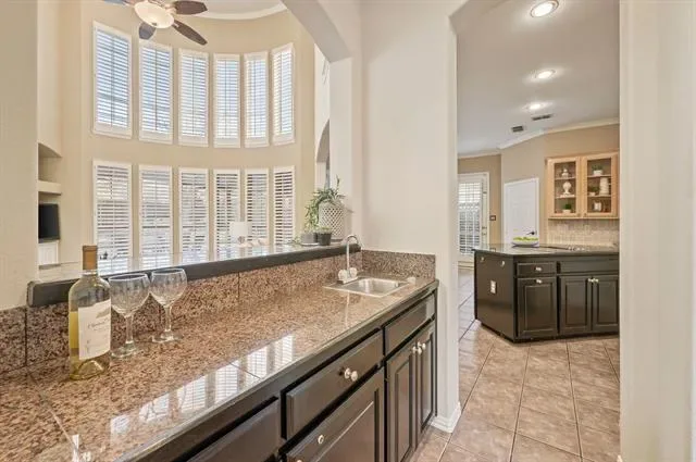 Built-in Features, Built-in Wine Cooler, Cable TV Available, Chandelier, Decorative Lighting, Dry Bar, Eat-in Kitchen, Granite Counters, High Speed Internet Available, Kitchen Island, Loft, Multiple Staircases, Open Floorplan, Pantry, Sound System Wiring, Vaulted Ceiling(s), Wainscoting, Walk- In Closet(s), Wet Bar