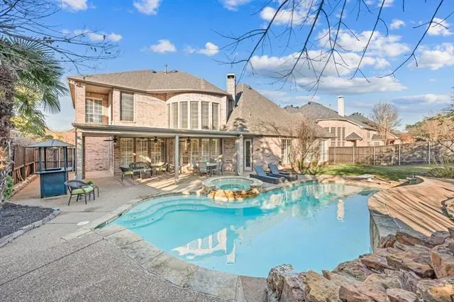Beautifully appointed two-story home in the heart of Colleyville offering four bedrooms, four full baths, multiple living areas, and a resort-style backyard complete with a pool and spa. The thoughtfully designed floor plan features a spacious main living area filled with natural light, a dedicated home office, and a well-appointed kitchen with ample counter space and storage—ideal for both everyday living and entertaining. The primary suite serves as a relaxing retreat with an en suite bath and walk-in closet, while the secondary bedrooms provide comfort and flexibility for family and guests. Upstairs, two outstanding entertainment spaces include a private game room perfect for gatherings and recreation, along with a dedicated media room designed for memorable movie nights. Step outside to your own backyard oasis featuring a sparkling pool, attached spa, and generous patio space for outdoor dining and relaxation. Adding to the home’s versatility, one garage is currently configured as a climate-controlled photo and video studio, offering privacy and flexible use for creative, professional, or hobby needs. Conveniently located just minutes from DFW International Airport, with easy access to Dallas and Fort Worth, this home is also close to premier shopping and dining in Southlake, as well as city trails, Kimzey Park, ponds, sports facilities, and the Cotton Belt Trail. With excellent highway access and a prime Colleyville location, this property delivers comfort, convenience, and exceptional lifestyle appeal.