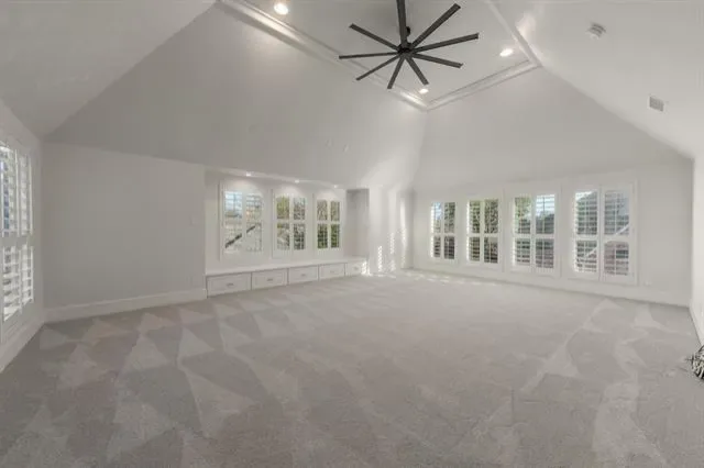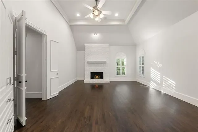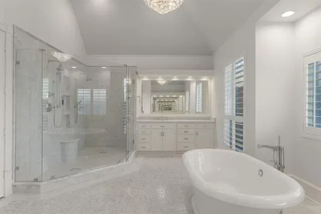 Stunning, beautifully updated Monticello custom home boasting exquisite finishes throughout. Soaring ceilings, crown moulding, abundant natural light, red oak hardwood flooring, custom millwork, plantation shutters, and a fabulous floating staircase create an elegant yet welcoming interior. The dramatic entry showcases custom 10-foot solid wood double doors with matching transom, hand-cut Low-E glass, and Emtek hardware. The gourmet kitchen features honed Brazilian quartzite countertops with full slab backsplash, oversized island with breakfast bar seating, custom soft-close cabinetry, dual Kohler apron-front sinks, and professional-grade appliances including a 48” gas cooktop, 48” built-in refrigerator, double ovens, two dishwashers, warming drawer, ice maker, wine refrigerator, and Vent-a-Hood system. Multiple living areas and a private study with built-ins and fireplace provide flexibility for entertaining and working from home. The primary suite offers a gas fireplace, expansive walk-in closets, and a spa-inspired Carrara marble bath with double shower and freestanding cast iron soaking tub. Three additional bedrooms upstairs, each with a private en-suite bath, a separate study and reading nook, plus a spacious game room providing plenty of space for family fun. Additional upgrades include two tankless water heaters, Ecobee smart thermostats, replaced ductwork, radiant barrier, enhanced attic insulation, whole-home surge protection, Control4 pre-wire, Cat 6 wiring, in-ceiling speakers, and Ring doorbell. Exterior improvements include Hardie siding, Low-E windows, a 2020 Class 3 impact-resistant roof, double driveway gates (2024) with MyQ access, insulated garage doors, Tesla charger, security camera wiring, covered patio pre-wired for TV, and gas lines ready for an outdoor kitchen. Situated on a treed corner cul-de-sac lot with 8-foot cedar fence and walking distance to neighborhood ponds, trails, tennis and pickleball courts, all within award-winning GCISD.