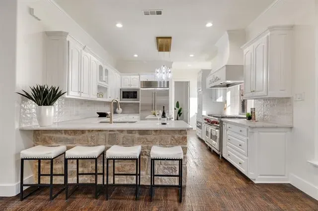 Elegant, fully updated home in the heart of Colleyville offering 5 bedrooms, 4.5 baths, private office, 3 spacious living areas, downstairs wet bar, upstairs private wine room, utility room with pet shower, and a 3-car garage.