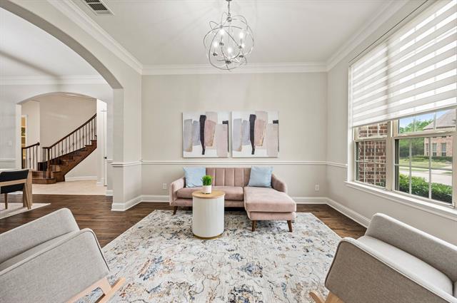 Set within the highly sought-after Reserve at Colleyville, this exceptional Toll Brothers residence offers refined living across two thoughtfully designed levels. A grand staircase makes a striking first impression, complemented by rich hardwood flooring that flows seamlessly throughout the main living spaces. The gourmet kitchen is a chef’s dream, appointed with stainless steel appliances, granite countertops, a gas cooktop, and a generous island with breakfast bar seating—perfect for both everyday living and entertaining. The main level features a private primary retreat along with a dedicated office, offering both comfort and convenience. Upstairs, you’ll find four well-appointed bedrooms, along with an expansive game room and a media room designed for elevated leisure and entertainment. Designed with space and versatility in mind, this home effortlessly accommodates both relaxation and gathering. Step outside to a large backyard complete with a covered patio—ideal for hosting—while still offering ample room to create your own resort-style oasis with a pool and spa. Conveniently located between Dallas and Fort Worth, just minutes from the Dallas Fort Worth International Airport! Nearby Southlake Town Square and Historic Downtown Grapevine offer endless dining and shopping options.