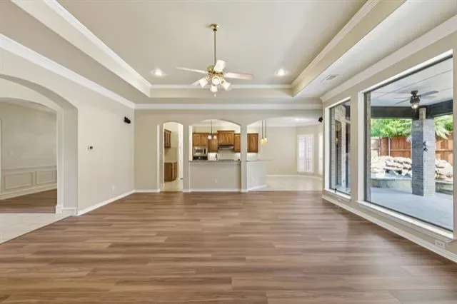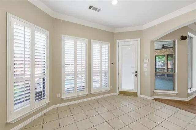 Located in the highly sought-after Riverwalk at Colleyville and within coveted Grapevine-Colleyville ISD, this stunning single-story residence offers a rare opportunity in a neighborhood where homes seldom hit the market. Situated on a corner lot, the home makes a commanding first impression with its elegant circle drive, exceptional curb appeal, and beautifully manicured landscaping. The thoughtfully designed interior features four spacious bedrooms and 3.5 baths, accented by modern LVP flooring and a kitchen built for entertaining, complete with granite countertops, a gas cooktop, a central island, and a convenient breakfast bar. Practicality meets luxury with high-end additions, including an elevator lift for easy attic access, a three-car garage, and a dedicated safe room for added peace of mind. The transition to the outdoors is seamless, leading to a private retreat featuring a sparkling hot tub with waterfall and remote control, and a low-maintenance backyard designed for effortless relaxation or hosting guests. Combining sophisticated style with functional upgrades, this home is a true standout in one of Colleyville’s most desirable communities. Bransford Elementary for current school year' zoning changes to OC Taylor Elementary starting 2026–2027. Buyer to verify.