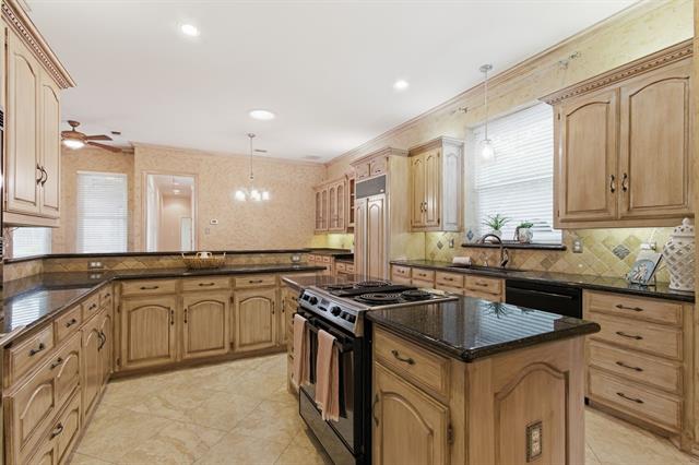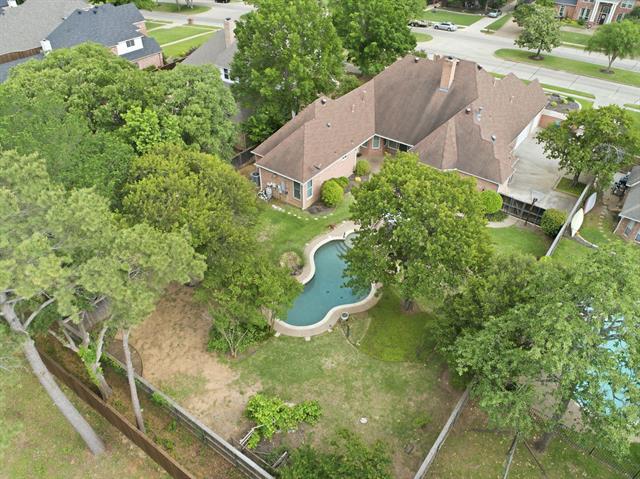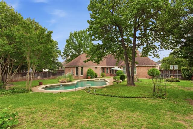 Prime location, generous lot, and single-story living in Colleyville. Located in highly acclaimed Grapevine-Colleyville ISD, near DFW airport, shopping, dining &' entertainment. This rare opportunity features a spacious one-story home on a gorgeous half-acre lot with a pool—an increasingly hard find property. Ideally situated within walking distance to all three schools and two parks, with Glenhope Elementary just a block away. Perfectly positioned for easy access to Kimzey Park and the scenic trails leading to Parr Park, ideal for walking, running, or biking. The home offers strong bones and standout features, ready for your personal vision. From the moment you arrive, the circular drive and stately solid wood &' leaded glass double doors set the tone. Inside, soaring ceilings elevate the formal living and dining areas, while a richly paneled study with custom built-ins creates the perfect work-from-home retreat. The main living space is designed for gathering and entertaining, featuring an open layout, multiple cozy gas log fireplaces, and a stylish bar complete with a Viking beverage fridge. The spacious kitchen offers a built-in Sub-Zero refrigerator, island and expansive black granite countertops—perfect for hosting or everyday living. The owner’s retreat is highlighted by a see-through gas fireplace that connects the bedroom to a spa-like bath, along with a custom-designed walk-in closet. The backyard is an oasis with shade trees and a lagoon style pool with a lounging deck and ample space for play, gardening, or creating an outdoor living area. Make this home your own. Priced to leave room for your personal updates, this home is the perfect canvas to bring your vision to life.